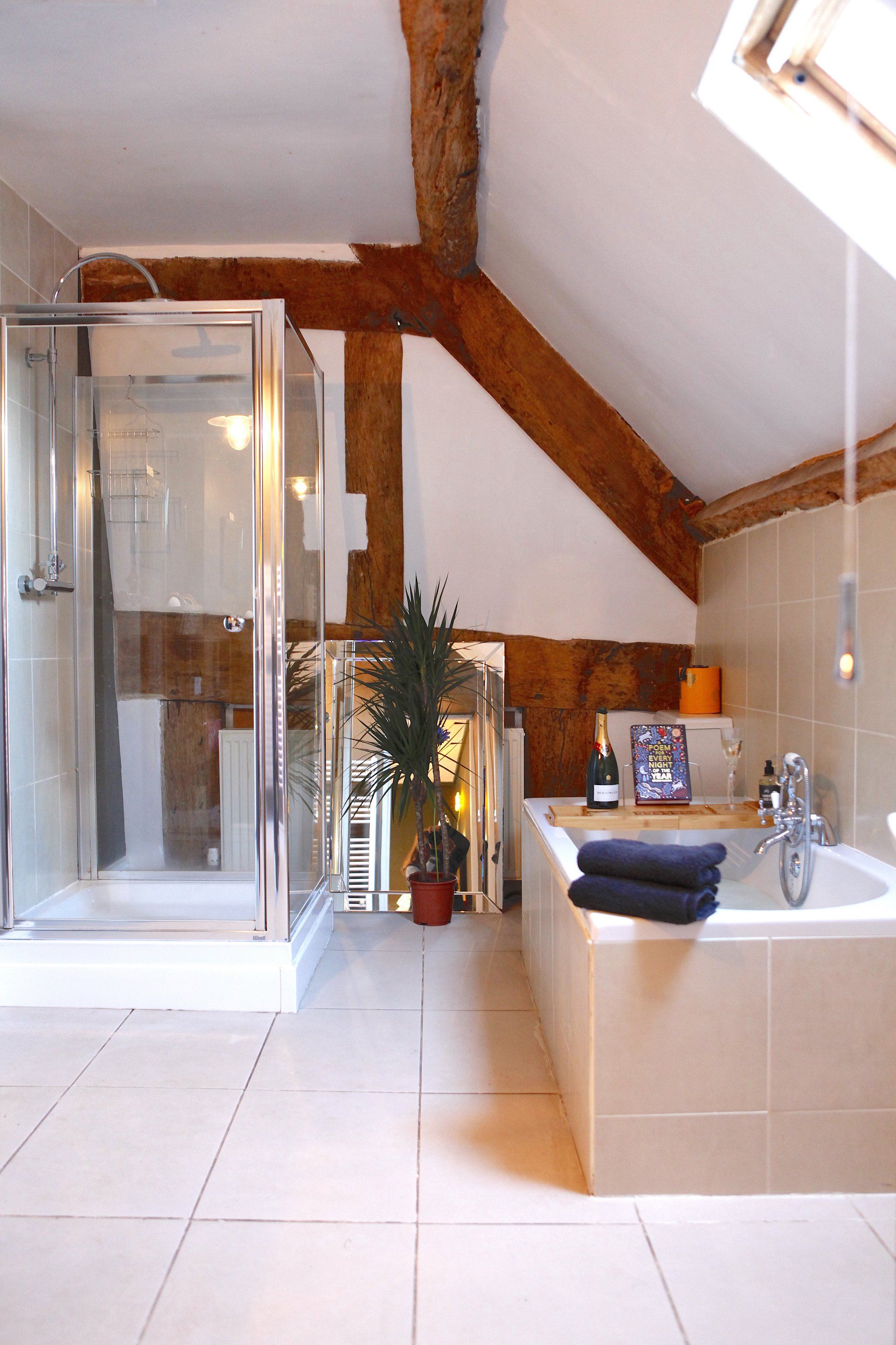 Eight large modern bathrooms across the two accommodation spaces. There are five large ensuite bathrooms with bath and separate shower, one smaller bathroom with claw foot tub and hand held shower plus a downstairs shower room with double cubicle.